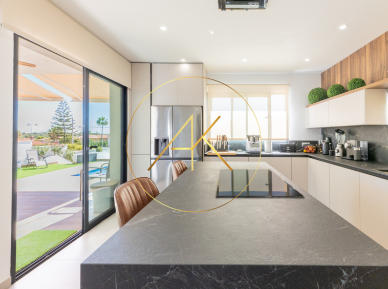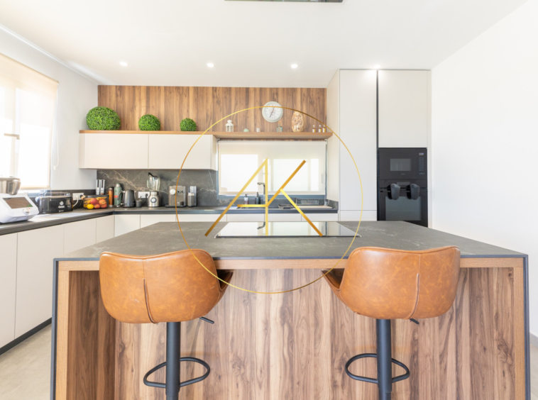 La cocina totalmente integrada con isla central y equipada con todos los electrodomésticos, además de un lavadero independiente.