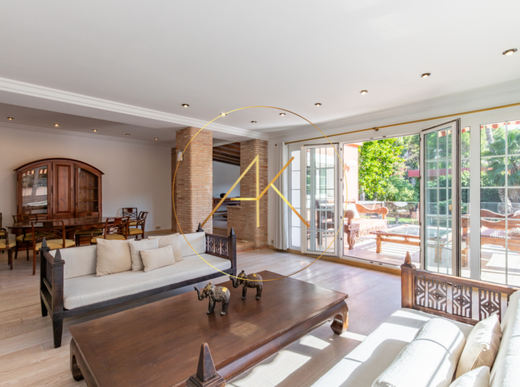 En la primera, amplio salon-comedor, con tres ambientes, salida a terraza principal con vistas al jardin y piscina. Cocina totalmente equipada.