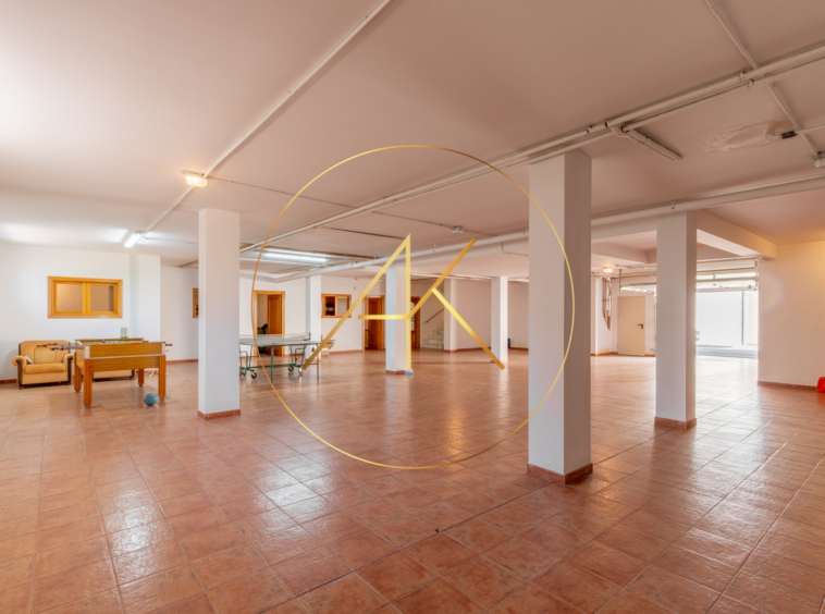 El semisótano es un espacio versátil que incluye un amplísimo garaje y un salón ideal para celebraciones.